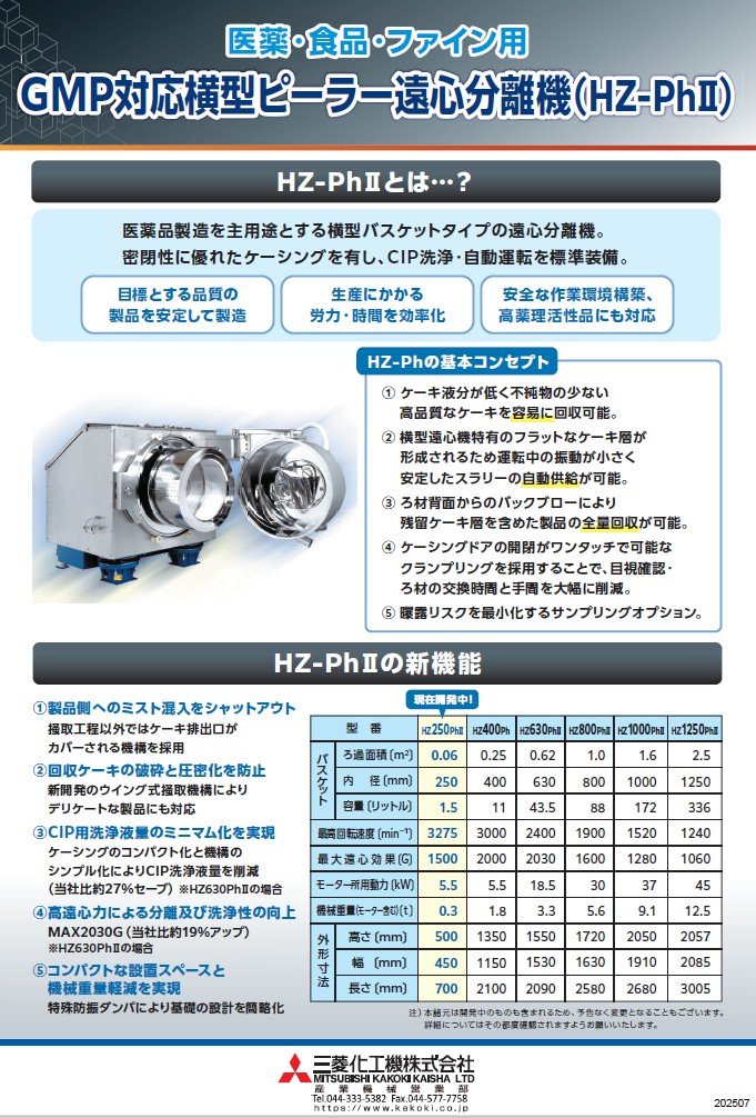 医薬GMP対応横型ピーラー遠心分離機(HZ-PhⅡ) 三菱-KM式