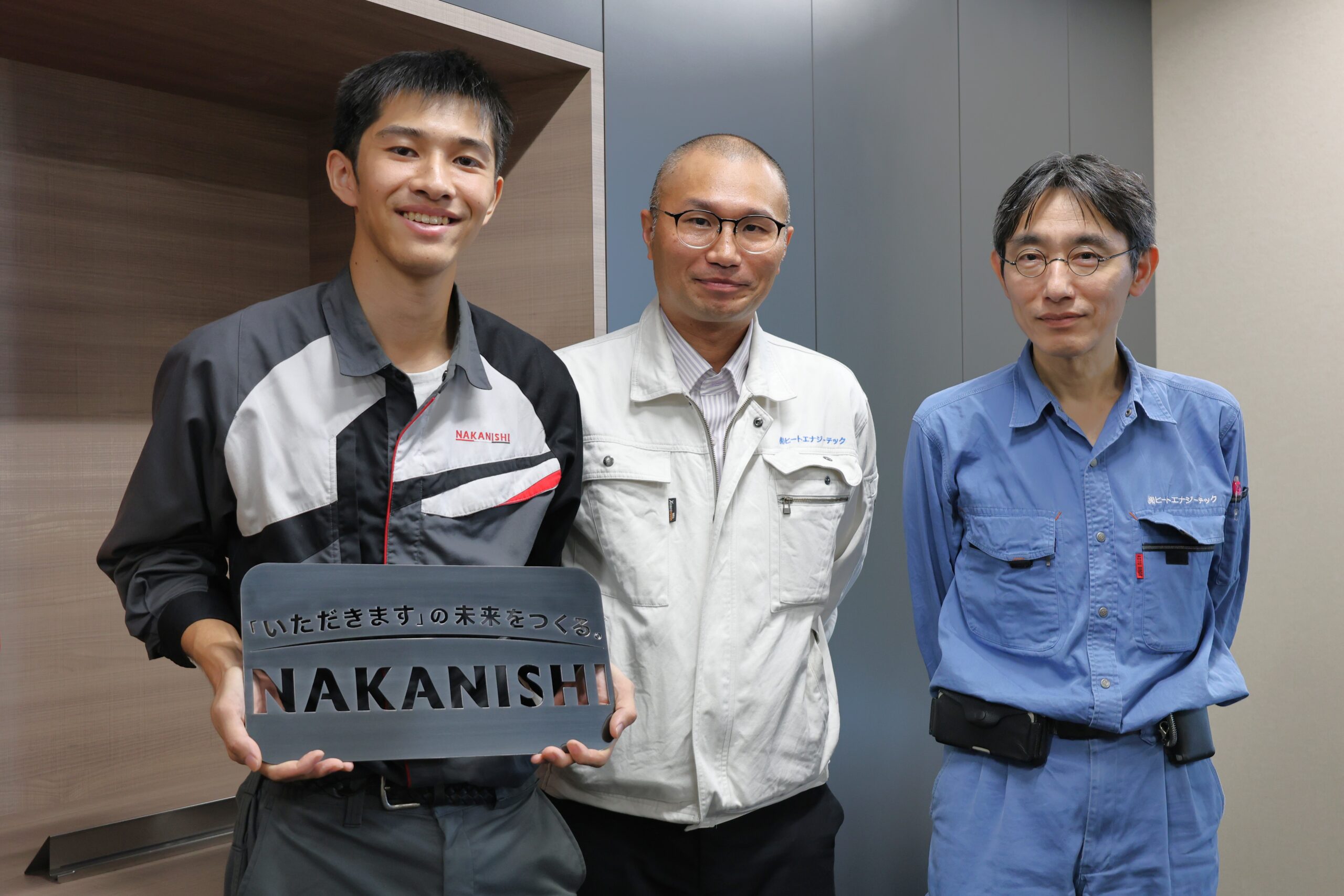 ※写真は左から中西製作所 設計・開発担当の片山岳陽さん、株式会社ヒートエナジーテック営業担当の小関惇さん、開発担当の荒井一之さん。技術者たちの総力により燃焼効率が劇的にアップした!
