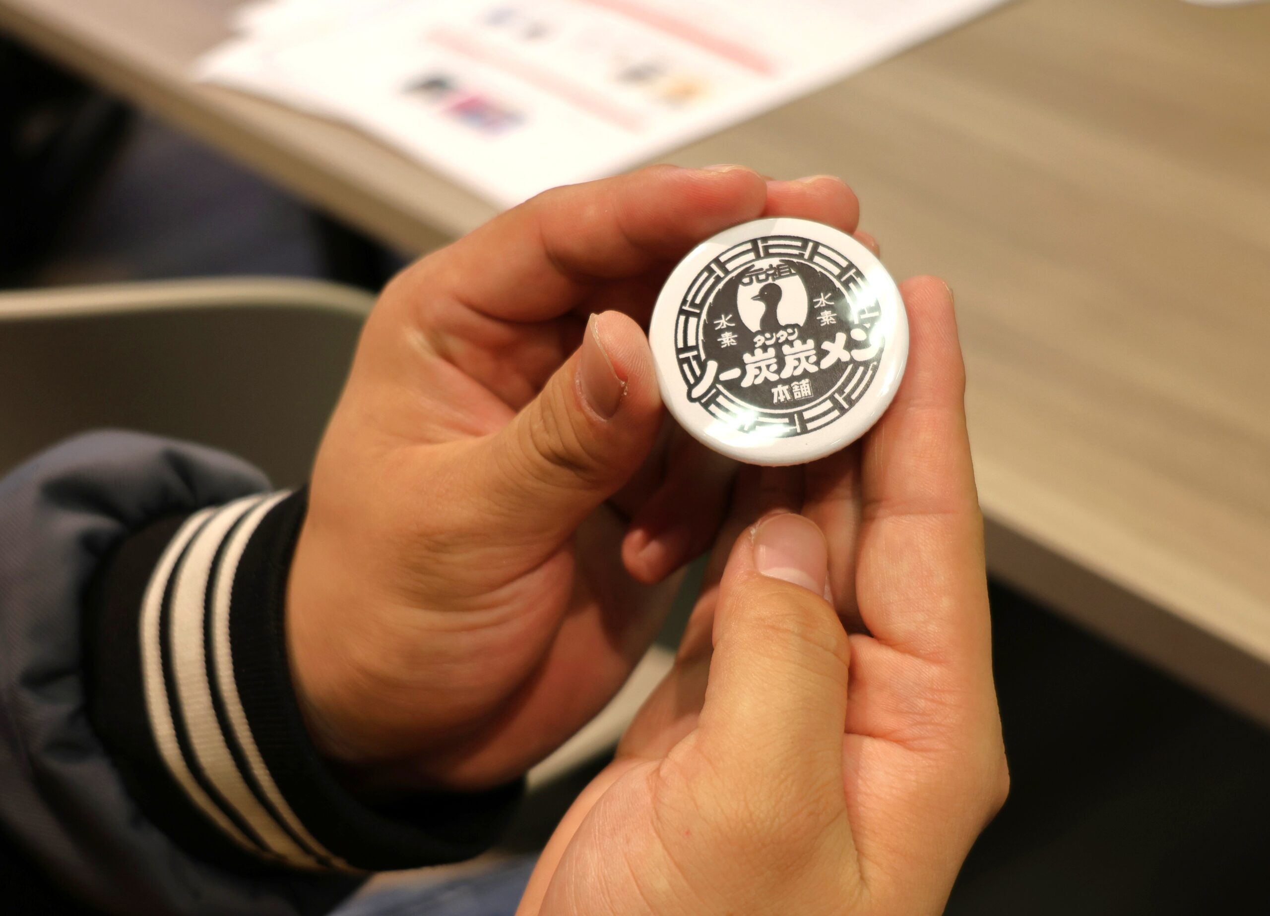 制作中!製造から調理まで、ほぼ水素エネルギーでつくられる脱炭素ラーメンのことを、このイベントをきっかけに広く知ってもらいたいと、注文された方にはオリジナルのステッカーや缶バッチづくり体験がセットで付いてくる。