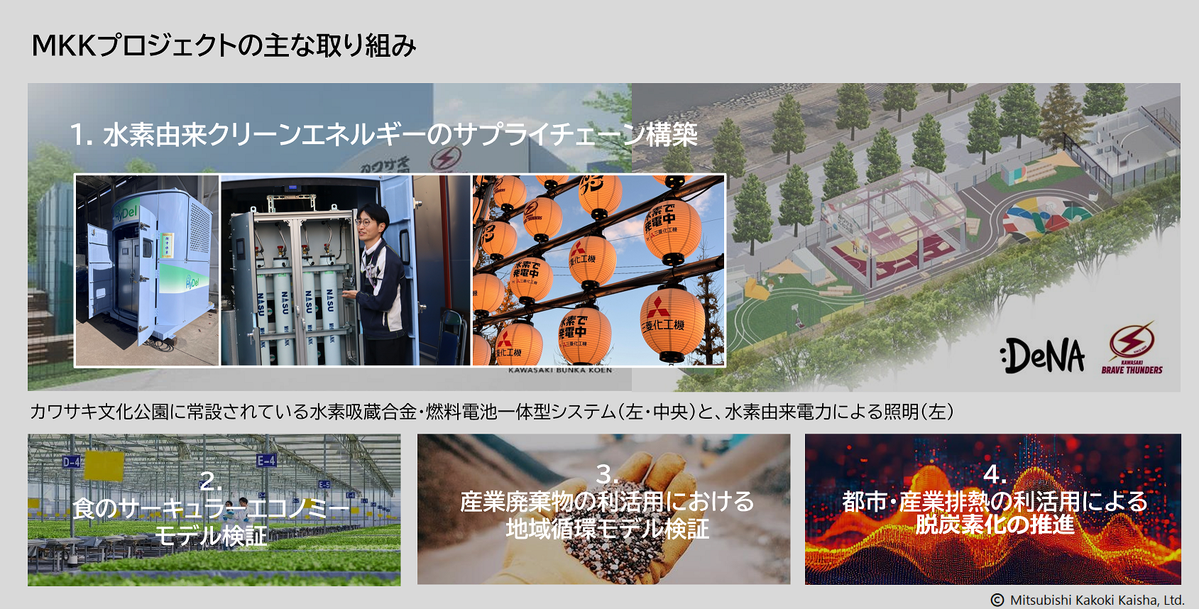 三菱化工機の参加意義今回の発表では、アリーナシティのハード面だけでなく、「Kawasaki 2050 Model」という長期ビジョンも示された。エネルギー、食と健康、モビリティ、教育・人材など、複数のテーマをまたぎながら、2050年を見据えて川崎発のサステナビリティモデルをつくっていく構想である。
