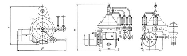 三菱ディスクセパレーターは、竪型遠心分離機です。円錐状のディスク(分離板)を組み込んだ回転体を高速回転させて生じる高遠心力により、比重差を用いて「液液」や「固液」の2相分離、「固液液」の3相分離を効率よく短時間で、連続的に分離することができます。